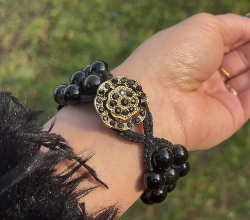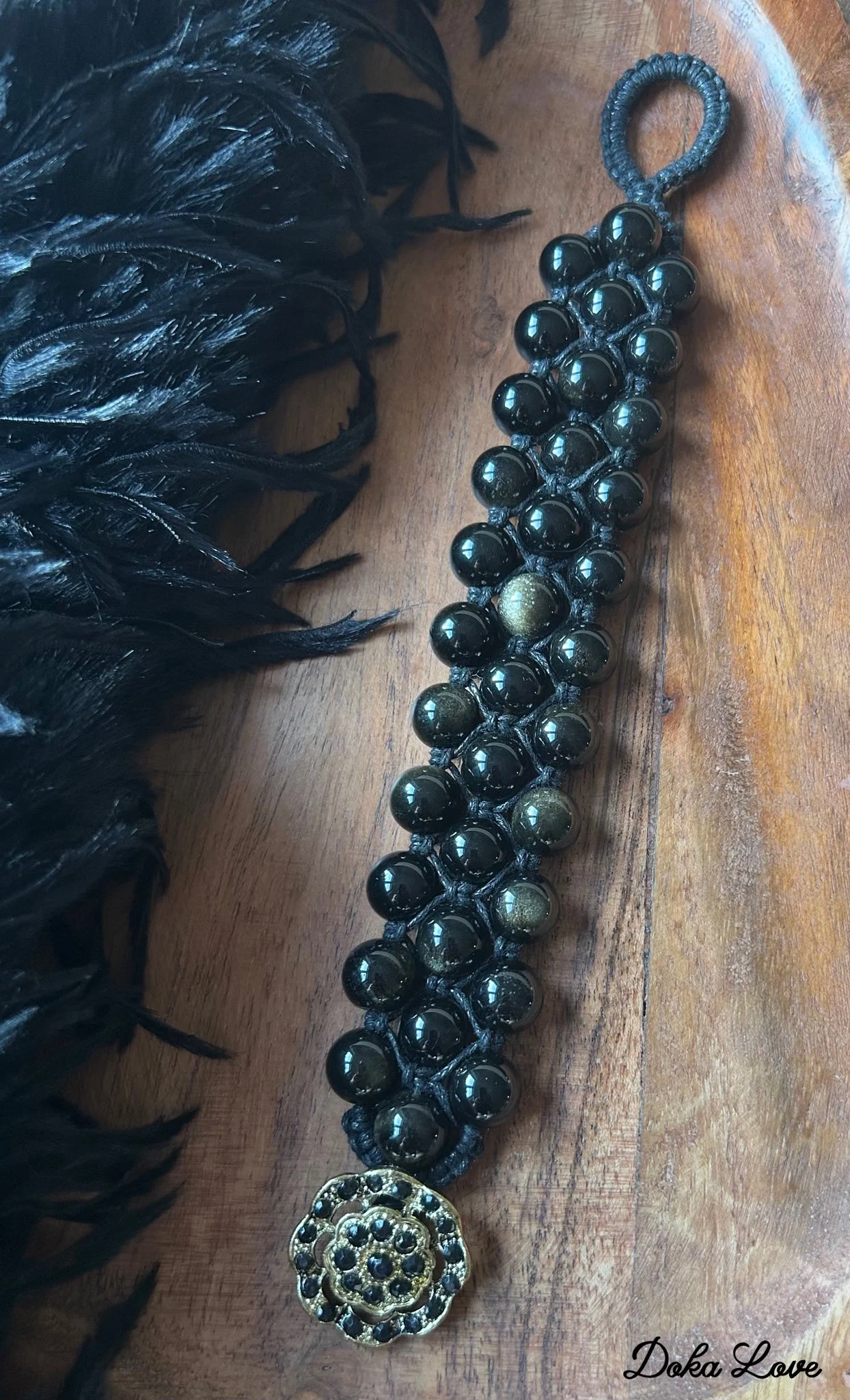 Trzyrzędowa bransoletka makramowa ze złotego obsydianu